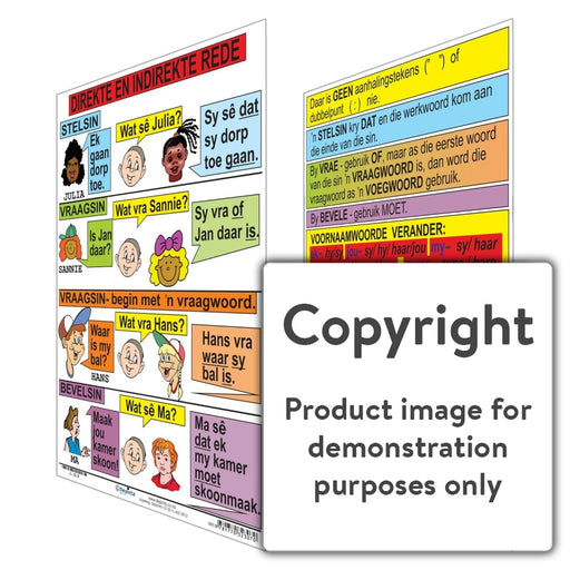 Wall Charts and PostersCode: A-DIROriginal price R 70.00 - Original price R 70.00Original priceR 70.00R 70.00 - R 70.00Current price R 70.00| /An Afrikaans chart depicting direct and indirect speech. "Direkte en Indirekte Rede".