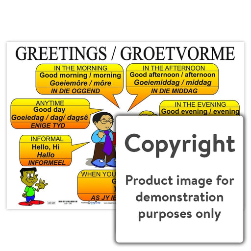 Wall Charts and PostersCode: AE-GROriginal price R 35.00 - Original price R 35.00Original priceR 35.00R 35.00 - R 35.00Current price R 35.00| /Full colour wall char / poster depicting different ways to greet someone and at different times of the day. This chart shows the different greeting...