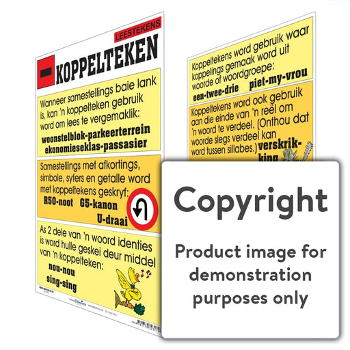 Wall Charts and PostersCode: A-LT4Original price R 70.00 - Original price R 70.00Original priceR 70.00R 70.00 - R 70.00Current price R 70.00| /Full colour wall chart / poster depicting a hyphen, in Afrikaans. This poster describes what a hyphen is and when it is used. This poster also give...