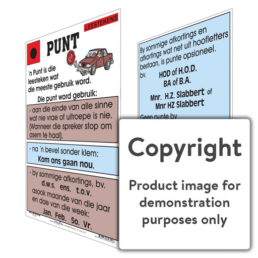 Wall Charts and PostersCode: A-LT1Original price R 70.00 - Original price R 70.00Original priceR 70.00R 70.00 - R 70.00Current price R 70.00| /Full colour wall chart / poster depicting a full stop, in Afrikaans " Leestekens: Punt ". This poster describes what a full stop is and when it is ...
