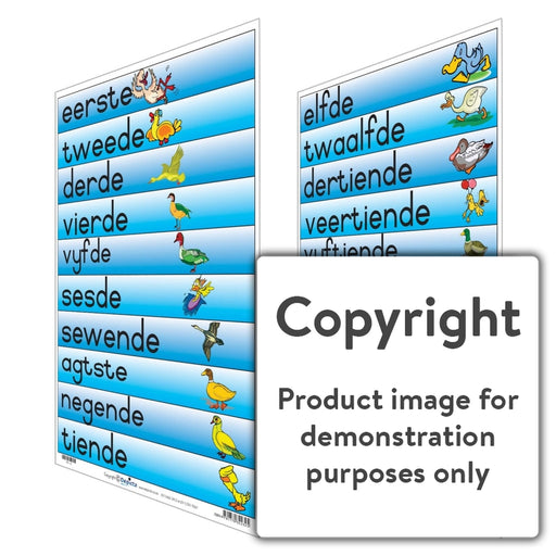 Wall Charts and PostersCode: F4-AOriginal price R 70.00 - Original price R 70.00Original priceR 70.00R 70.00 - R 70.00Current price R 70.00| /Full colour wall chart / poster depicting ordinal numbers, in Afrikaans " Rangtelwoorde ": (Can also be used to teach Afrikaans ordinal numbers a...
