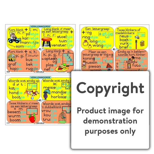 Wall Charts and PostersCode: A-VWOriginal price R 140.00 - Original price R 140.00Original priceR 140.00R 140.00 - R 140.00Current price R 140.00| /A set of Full colour, Afrikaans wall charts that describe the diminutives " verkleinwoords " that are used with specific words and word endings.