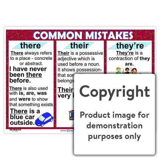 Wall Charts and PostersCode: E-CM2Original price R 35.00 - Original price R 35.00Original priceR 35.00R 35.00 - R 35.00Current price R 35.00| /Full colour wall chart / poster showing common mistakes with the words: there, their and they're. This chart depicts an explanation of each word an...