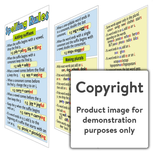 Wall Charts and PostersCode: E-SRULEOriginal price R 105.00 - Original price R 105.00Original priceR 105.00R 105.00 - R 105.00Current price R 105.00| /Full colour wall chart / poster showing the different spelling rules with an explanation and example for each rule. This chart focuses on adding su...