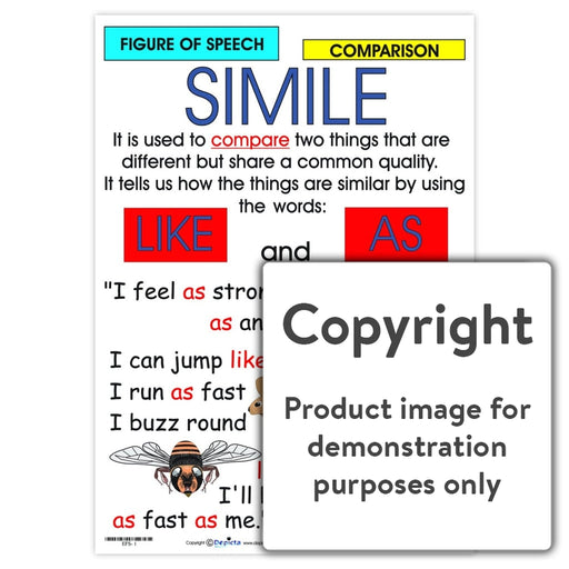 Full colour wall chart / poster about Similes. This defines a simile and gives examples of similes such as: I feel as strong as an ox. I can jump...