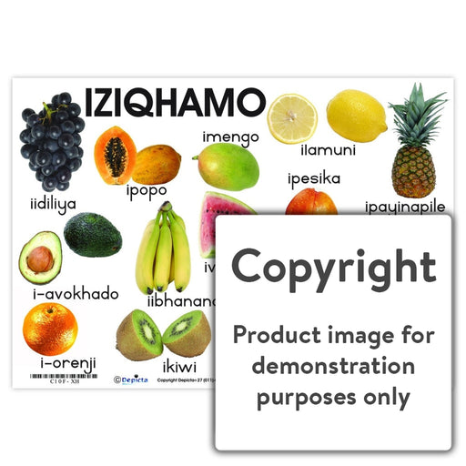 Wall Charts and PostersCode: C10F-XHOriginal price R 35.00 - Original price R 35.00Original priceR 35.00R 35.00 - R 35.00Current price R 35.00| /Full colour wall chart / poster depicting different kinds of fruit, in Xhosa " Iziqhamo " with full colour picture of each fruit.
