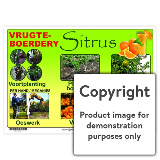 Wall Charts and PostersCode: SSG-FFC-AOriginal price R 35.00 - Original price R 35.00Original priceR 35.00R 35.00 - R 35.00Current price R 35.00| /Full colour wall chart / poster naming and depicting the process of citrus fruit farming, in Afrikaans " Vrugte-boerdery: Sitrus "