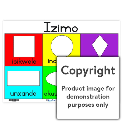 Wall Charts and PostersCode: C15-ZUOriginal price R 35.00 - Original price R 35.00Original priceR 35.00R 35.00 - R 35.00Current price R 35.00| /Full colour wall chart / poster depicting six different shapes with their name, in Zulu.
