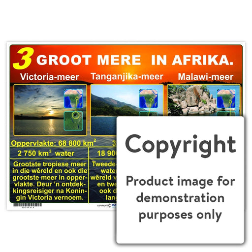 Wall Charts and PostersCode: SSG-GLA-AOriginal price R 35.00 - Original price R 35.00Original priceR 35.00R 35.00 - R 35.00Current price R 35.00| /Full colour wall chart / poster naming and depicting the 3 great lakes in Africa (Lake Victoria, Lake Tanganyika and Lake Malawi) with 3 facts abou...