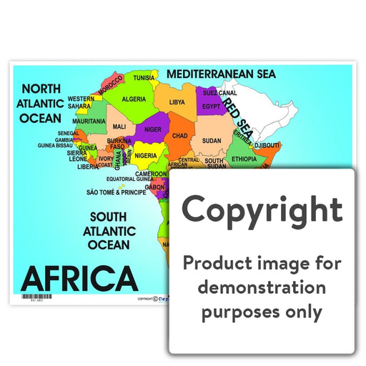Wall Charts and PostersCode: SS-GE2Original price R 35.00 - Original price R 35.00Original priceR 35.00R 35.00 - R 35.00Current price R 35.00| /Full colour wall chart / poster depicting a map of Africa. This chart names and depicts all the continents in Africa and oceans surrounding Africa.