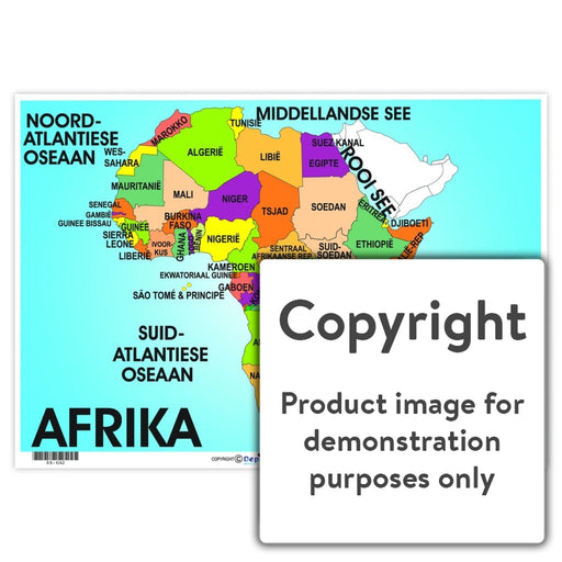 Wall Charts and PostersCode: SS-GA2Original price R 35.00 - Original price R 35.00Original priceR 35.00R 35.00 - R 35.00Current price R 35.00| /Full colour wall chart / poster depicting a map of Africa, in Afrikaans " Afrika ". This chart names and depicts all the continents in Africa and o...