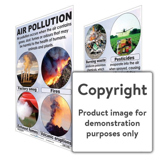 Wall Charts and PostersCode: POL-A-EOriginal price R 70.00 - Original price R 70.00Original priceR 70.00R 70.00 - R 70.00Current price R 70.00| /Full colour wall charts / posters defining Air Pollution. These charts name and depict 8 causes of air pollution, such as: Factory smoke Fire Exh...
