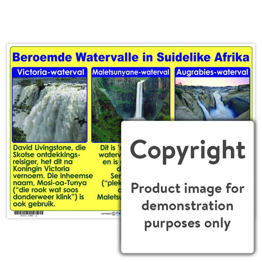 Wall Charts and PostersCode: SSG-AWF-AOriginal price R 35.00 - Original price R 35.00Original priceR 35.00R 35.00 - R 35.00Current price R 35.00| /Full colour wall chart / poster depicting and describing the most famous waterfalls in Southern Africa, in Afrikaans " Beroemde Watervalle in Suid...