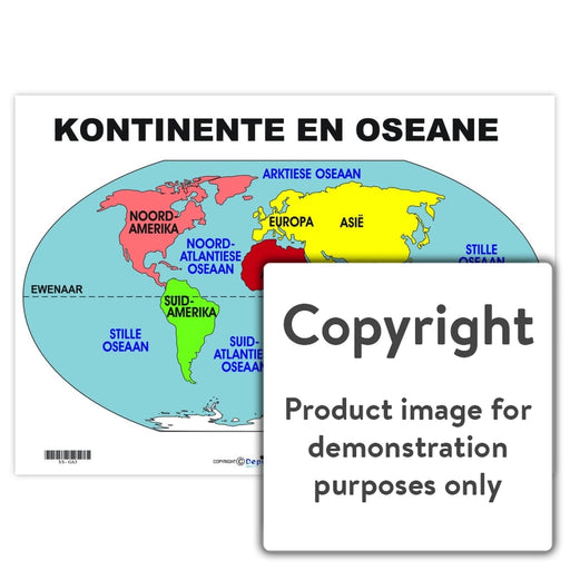 Wall Charts and PostersCode: SS-GA3Original price R 35.00 - Original price R 35.00Original priceR 35.00R 35.00 - R 35.00Current price R 35.00| /Full colour wall chart / poster naming and depicting all the continents and oceans around the world, in Afrikaans " Kontinente en Oseane ".