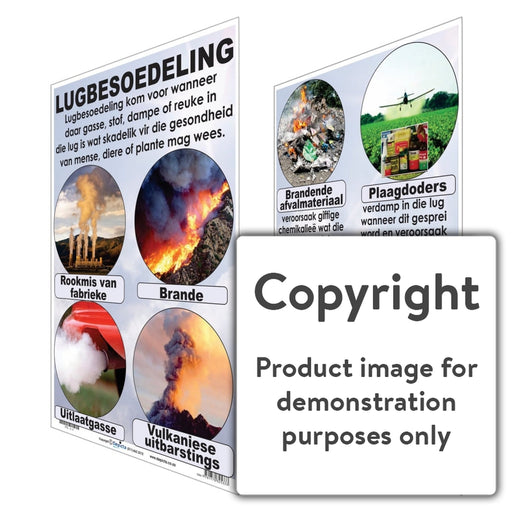 Wall Charts and PostersCode: POL-A-AOriginal price R 70.00 - Original price R 70.00Original priceR 70.00R 70.00 - R 70.00Current price R 70.00| /Full colour wall charts / posters defining Air Pollution, in Afrikaans. These charts name and depict 8 causes of air pollution.