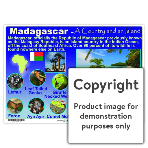 Wall Charts and PostersCode: SSG-MAD-EOriginal price R 35.00 - Original price R 35.00Original priceR 35.00R 35.00 - R 35.00Current price R 35.00| /Full colour wall chart / poster with facts about Madagascar - A Country and an Island. This chart explains where Madagascar is situated and names a...