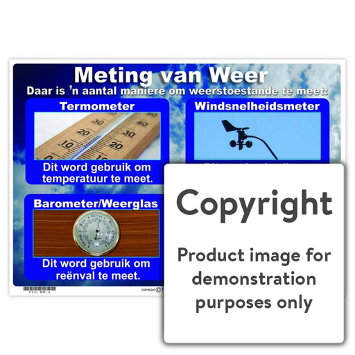 Wall Charts and PostersCode: SSG-MW-AOriginal price R 35.00 - Original price R 35.00Original priceR 35.00R 35.00 - R 35.00Current price R 35.00| /Full colour Afrikaans wall chart / poster depicting 4 ways to measure the weather.