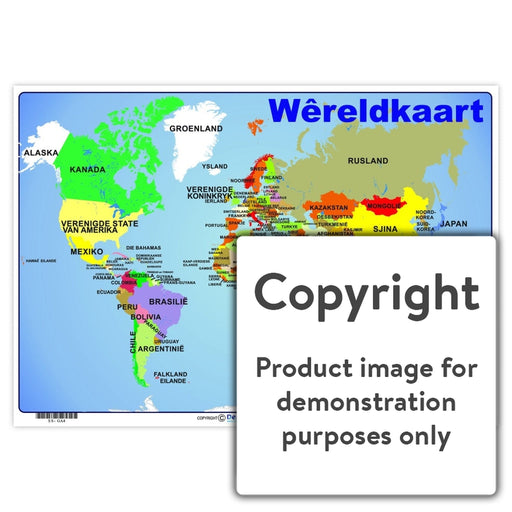 Wall Charts and PostersCode: SS-GA4Original price R 35.00 - Original price R 35.00Original priceR 35.00R 35.00 - R 35.00Current price R 35.00| /Full colour wall chart / poster of a World Map, in Afrikaans " Wereldkaart ". This chart names and depicts all the countries around the world.