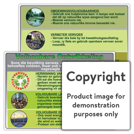 Volhoubare Ontwikkeling - Kaarte Can be used in the classroom or at home for discussion or information purposes.   2 X 320 x 455mm laminated charts...