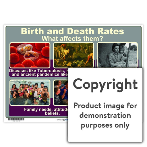 Wall Charts and PostersCode: SSG-BDR-EOriginal price R 35.00 - Original price R 35.00Original priceR 35.00R 35.00 - R 35.00Current price R 35.00| /Full colour wall chart / poster depicting birth and death rates in the world, and what circumstances or situations affect those rates.