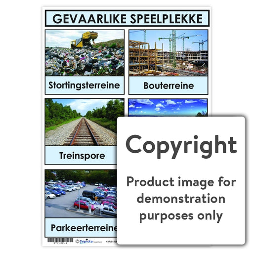 Wall Charts and PostersCode: STY-DP-AOriginal price R 35.00 - Original price R 35.00Original priceR 35.00R 35.00 - R 35.00Current price R 35.00| /Full colour wall chart / poster with 6 squares depicting dangerous places to play, in Afrikaans " Gevaarlike Speelplekke ". Each square has a pict...