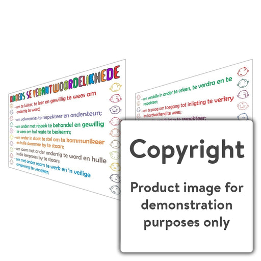 Wall Charts and PostersCode: LO4-AOriginal price R 70.00 - Original price R 70.00Original priceR 70.00R 70.00 - R 70.00Current price R 70.00| /Full colour wall charts / posters depicting Children's responsibilities, in Afrikaans. This chart lists 12 main responsibilities that children have.