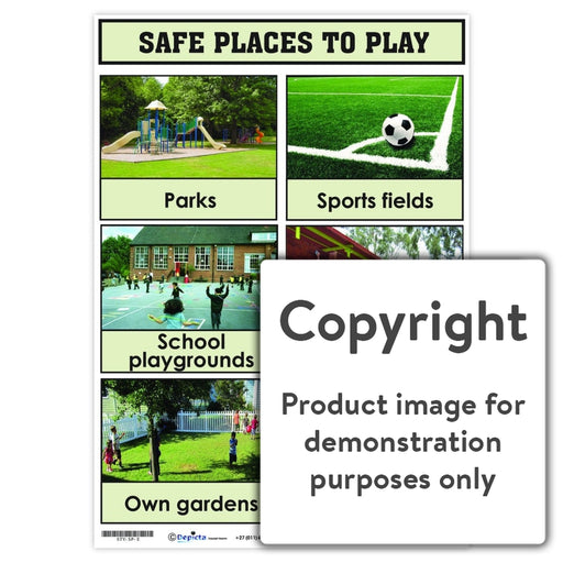 Wall Charts and PostersCode: STY-SP-EOriginal price R 35.00 - Original price R 35.00Original priceR 35.00R 35.00 - R 35.00Current price R 35.00| /Full colour wall chart / poster depicting safe places to play. This chart contains six squares. Five of those squares contain pictures with the na...