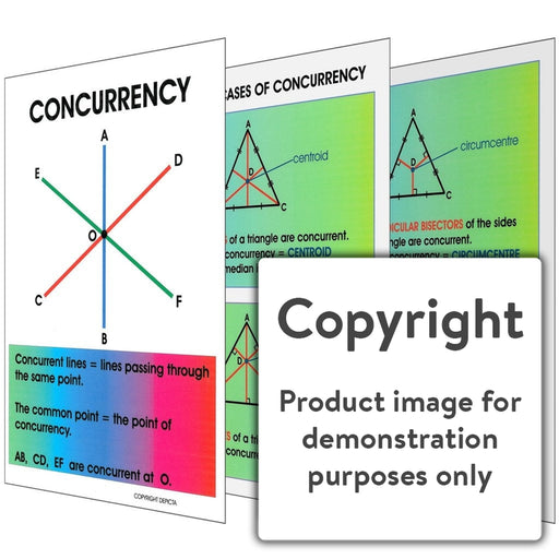 Wall Charts and PostersCode: MSG2-EOriginal price R 105.00 - Original price R 105.00Original priceR 105.00R 105.00 - R 105.00Current price R 105.00| /Full colour wall chart / poster depicting concurrency. This chart explains the common lines and common points of concurrency as well as the 4 case...