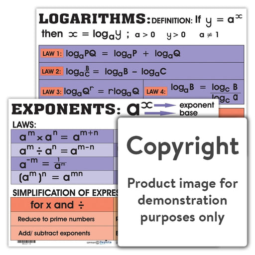 Wall Charts and PostersCode: MSA3-EOriginal price R 70.00 - Original price R 70.00Original priceR 70.00R 70.00 - R 70.00Current price R 70.00| /Full colour wall chart / poster depicting the laws and expressions of exponents and logarithms.