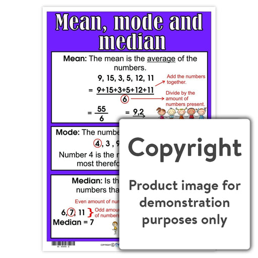 Wall Charts and PostersCode: M-MMM-EOriginal price R 35.00 - Original price R 35.00Original priceR 35.00R 35.00 - R 35.00Current price R 35.00| /Full colour wall chart / poster depicting the mean, mode and median. This chart defines the different terms and explains how to find the mean, mode...