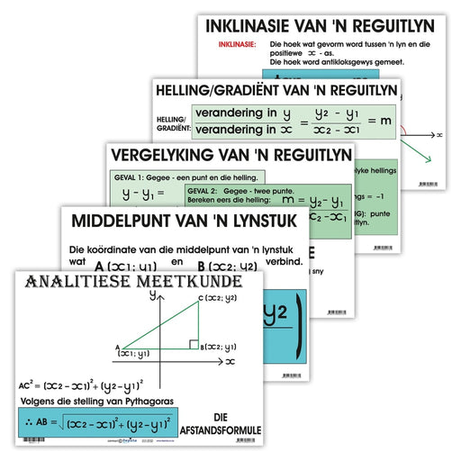 Wall Charts and PostersCode: MSG3-AOriginal price R 175.00 - Original price R 175.00Original priceR 175.00R 175.00 - R 175.00Current price R 175.00| /Full colour wall charts / posters depicting analytical geometry, in Afrikaans. These charts define and show how to work out the: Midpoint of a li...