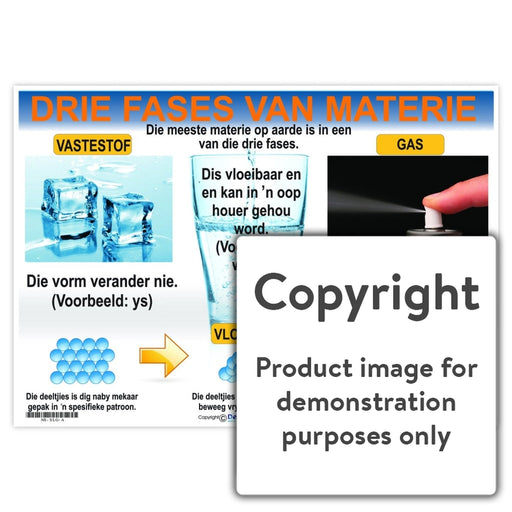 Wall Charts and PostersCode: NS-SLG-AOriginal price R 35.00 - Original price R 35.00Original priceR 35.00R 35.00 - R 35.00Current price R 35.00| /Full colour wall chart / poster depicting three states of matter, in Afrikaans " Drie fases van Materie ". This chart depicts and explains solid "...
