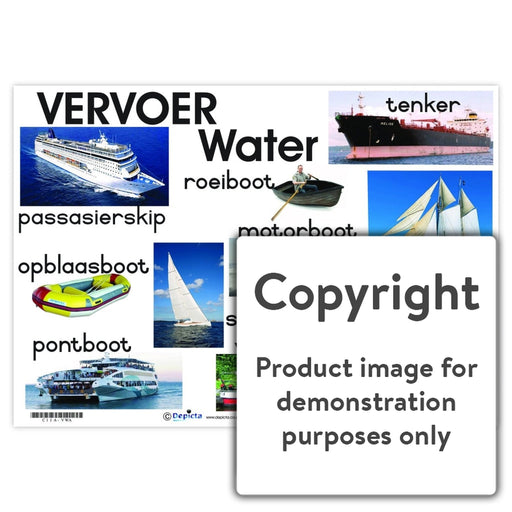 Wall Charts and PostersCode: C11A-VWAOriginal price R 35.00 - Original price R 35.00Original priceR 35.00R 35.00 - R 35.00Current price R 35.00| /Full colour wall chart / poster depicting eleven different forms of transport that is used on/in the water, in Afrikaans " Vervoer - Water ".