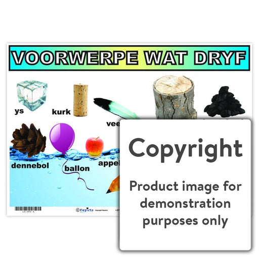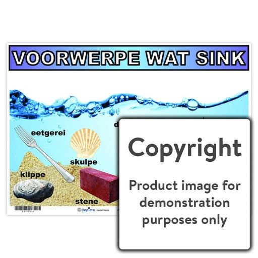 Wall Charts and PostersCode: LS-OTS-AOriginal price R 35.00 - Original price R 35.00Original priceR 35.00R 35.00 - R 35.00Current price R 35.00| /Full colour wall chart / poster depicting 8 different objects that sink, in Afrikaans " Voorwerpe wat sink ".