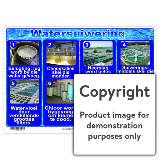 Wall Charts and PostersCode: NS-WP-AOriginal price R 35.00 - Original price R 35.00Original priceR 35.00R 35.00 - R 35.00Current price R 35.00| /Full colour wall chart / poster depicting and explaining the 8 steps in the water purification process, in Afrikaans " Watersuiwering ".