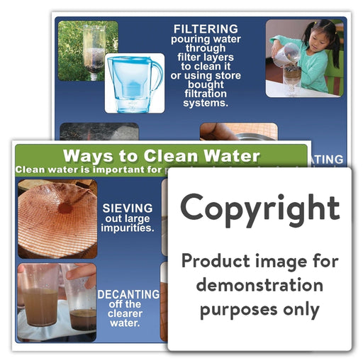 Wall Charts and PostersCode: SSG-WCW-EOriginal price R 70.00 - Original price R 70.00Original priceR 70.00R 70.00 - R 70.00Current price R 70.00| /Full colour wall chart / poster depicting seven ways to clean water. Sieving Settling Decanting Treating Filtering Boiling Treating