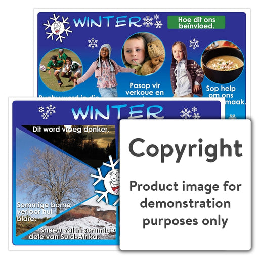 Wall Charts and PostersCode: LS-WIN-AOriginal price R 70.00 - Original price R 70.00Original priceR 70.00R 70.00 - R 70.00Current price R 70.00| /Full colour Afrikaans wall charts / posters depicting the different changes that occur during the season of winter and the ways winter affects us.
