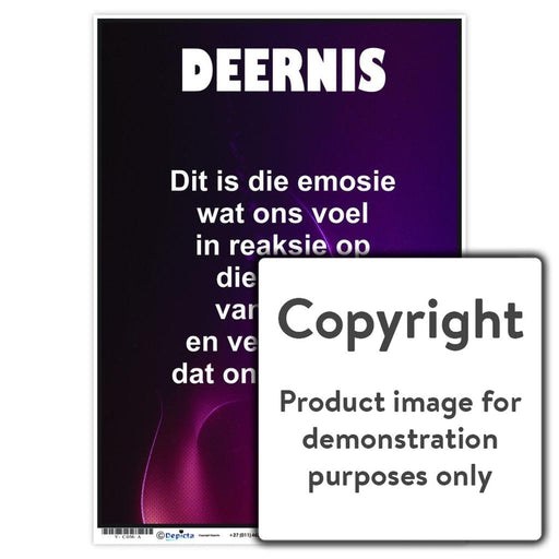 Wall Charts and PostersCode: V-COM-AOriginal price R 35.00 - Original price R 35.00Original priceR 35.00R 35.00 - R 35.00Current price R 35.00| /Full colour Afrikaans wall chart / poster depicting the value, compassion, in Afrikaans " Deernis ". This chart defines being compassionate.