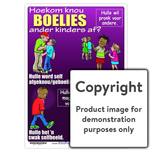Wall Charts and PostersCode: BUL-WBB-AOriginal price R 35.00 - Original price R 35.00Original priceR 35.00R 35.00 - R 35.00Current price R 35.00| /Full colour wall chart / poster, for Primary School, depicting why bullies bully others, in Afrikaans " Hoekom knou boelies ander kinders af? " wi...