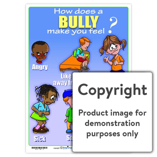 Wall Charts and PostersCode: BUL-MF-EOriginal price R 35.00 - Original price R 35.00Original priceR 35.00R 35.00 - R 35.00Current price R 35.00| /Full colour wall chart / poster depicting how bullies can make you feel with full colour pictures demonstrating each emotion. Angry Like staying ...