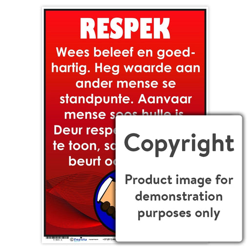 Wall Charts and PostersCode: V-RES-AOriginal price R 35.00 - Original price R 35.00Original priceR 35.00R 35.00 - R 35.00Current price R 35.00| /Full colour Afrikaans wall chart / poster describing the value - respect " Respek ".