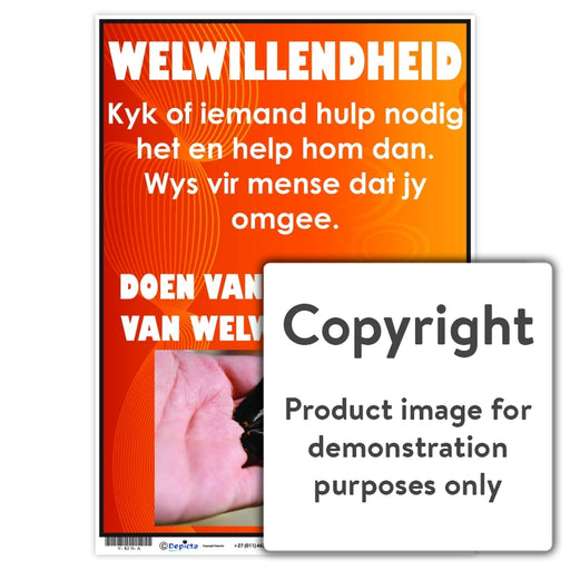Wall Charts and PostersCode: V-KIN-AOriginal price R 35.00 - Original price R 35.00Original priceR 35.00R 35.00 - R 35.00Current price R 35.00| /Full colour wall chart / poster depicting the value, Kindness, in Afrikaans " Welwillendheid ". This chart defines the word and states "Commit and ...