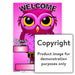 Full colour Welcome Chart with a large picture of a pink Owl. This chart contains 3 blocks to write the teachers name, the grade and the classroom.