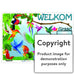 Full colour Welcome Chart with pictures of different birds. This chart contains 3 blocks to write the teachers name " onderwyser/es ", the grade " graad " and the classroom " klaskamer ", in Afrikaans " Klaskamer ".