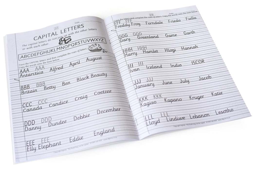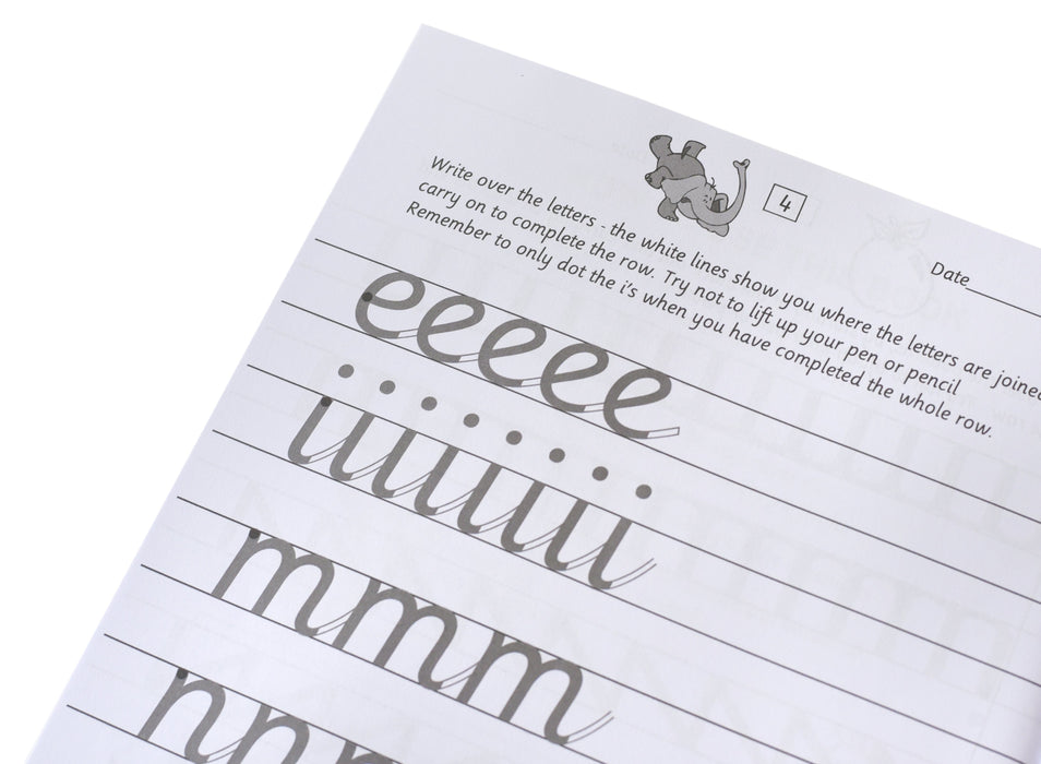 This specialised workbook guides learners through the basics of joined-up writing. It is used primarily as an alternative to cursive.