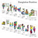16 x Full colour wall charts / posters depicting a daily routine, in Afrikaans " Daaglikse Roetine ". Each chart has a different activity for different times of the day. Each activity is depicted with a picture and the name of the activity.