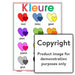 Full colour wall chart / poster depicting different colours in a heart shape, in Afrikaans " Kleure - harte ". Each colour has its own heart with a small heart next to it showing a darker version of that colour. The name of the colour is written underneath each pair of hearts.